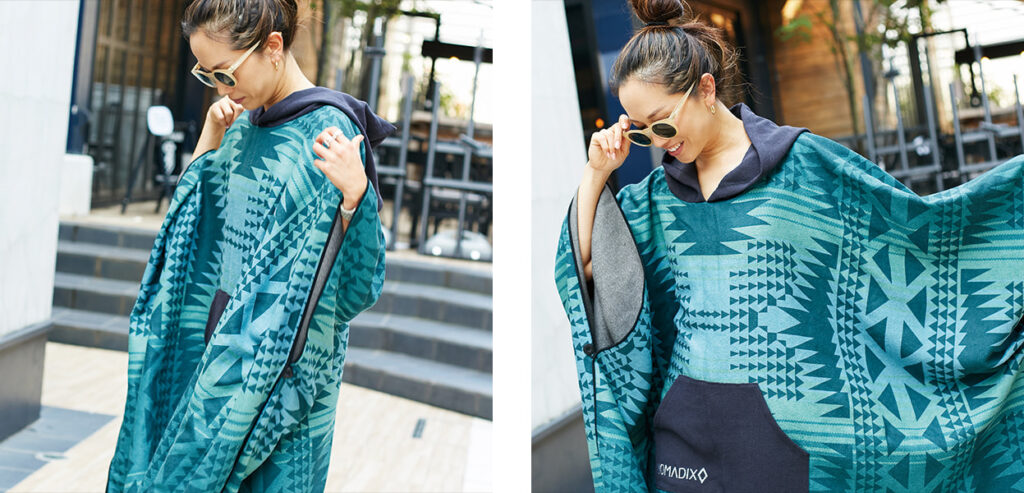 海や川でのアクティビティの後、濡れた体を拭くのに使いやすいのが「Nomadix Poncho」。タオルを上からすっぽり被れるようにポンチョ型にしただけ、なのだが、それがまた超便利。タオルの中で着替えもパパッと済ませられるほど、十分ゆとりのあるサイズ感でサーファーにはおなじみのアイテムだが、今ならサウナキャンプなんかでも重宝しそうだ。