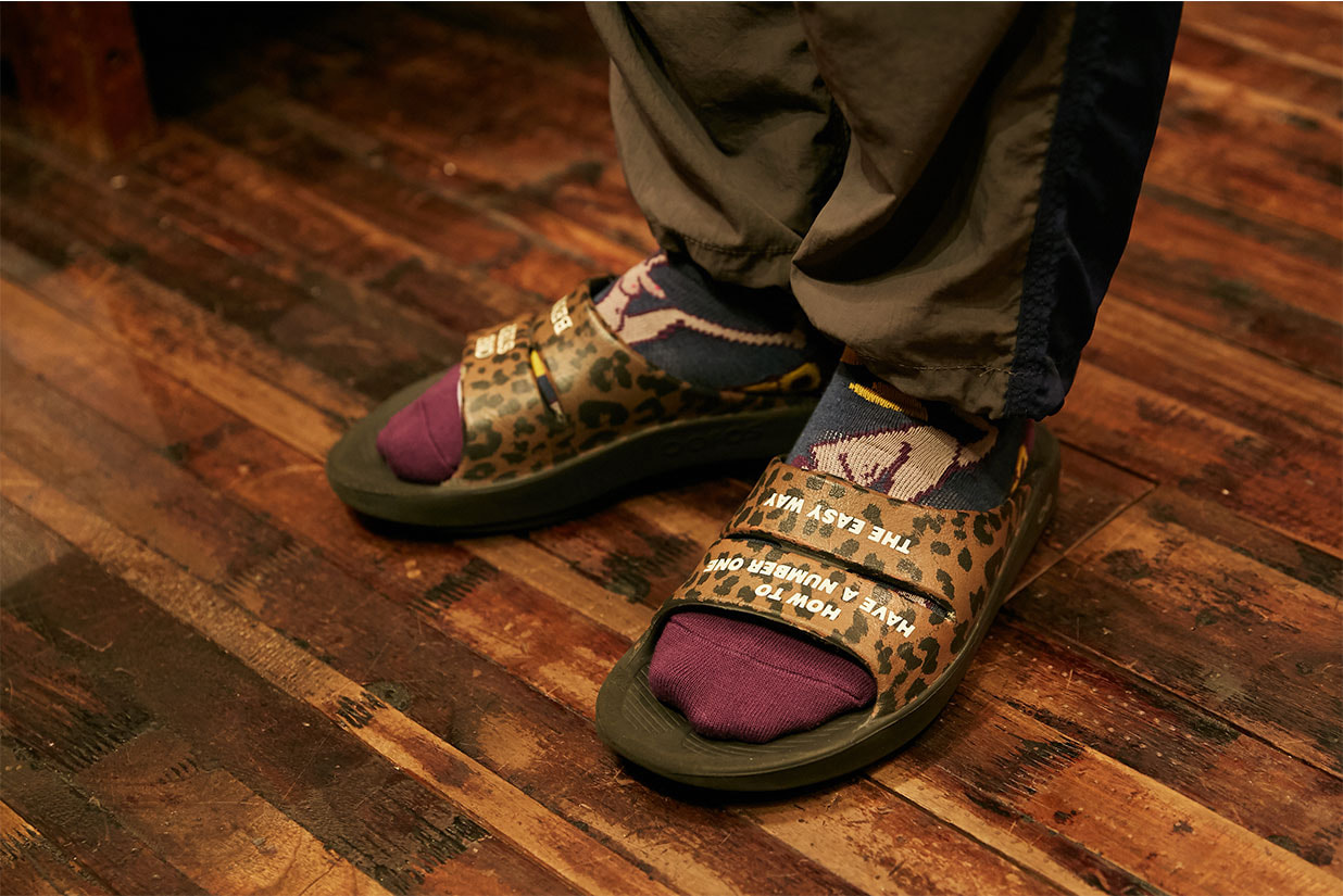 「OOahh Sport Designed by ELDORESO」。「ウーフォス」の定番モデルのひとつ、「OOahh Sport」をベースに、「エルドレッソ」の定番でもあるレオパード柄をあしらった一足で、2020年初頭に発売されるやいなや、瞬く間に完売してしまうほどの人気を博したアイテムだ。