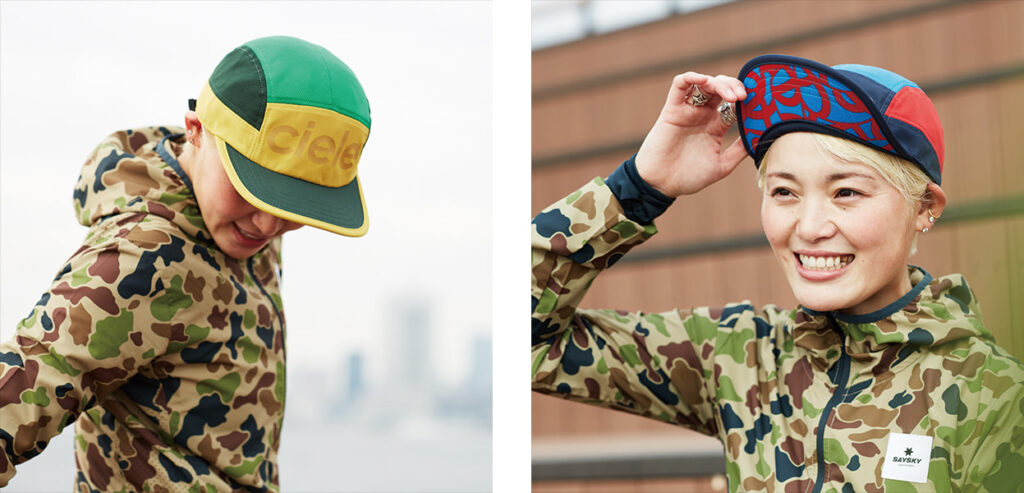 定番モデルである「GO CAP Standard」や「GO CAP Century」のように、同系色のグラデーションから、全く異なる色味を大胆にミックスしたものまで、複数のカラーがあしらわれた独特のデザインこそ、シエルらしいルックスと言える。つばの裏面まで抜かりなくデザインが施されており、つばを反り上げて見せるといった被り方のアレンジも自在。ランナーのモチベーションを刺激するディティールが随所に内包されている。