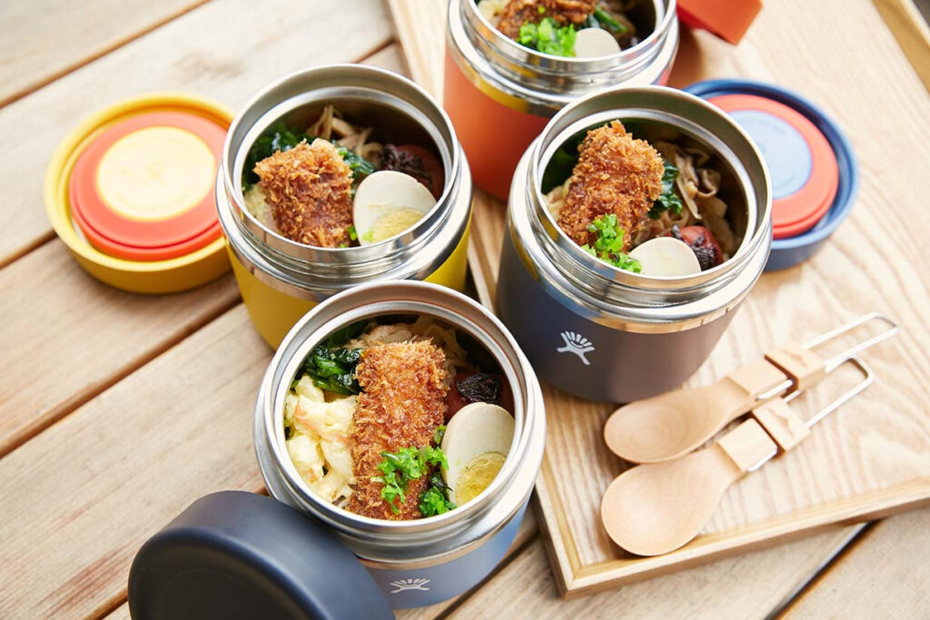 普段使いからピクニックまで、お弁当入れとして使うのはもちろん、サーフィン終わりに食べる温かいスープを入れて行くもよし。アイスクリームでも、スパイスカレーでも、食材を問わず、アウトドアへ持ち出して楽しみたいものを詰め込んで行ける。