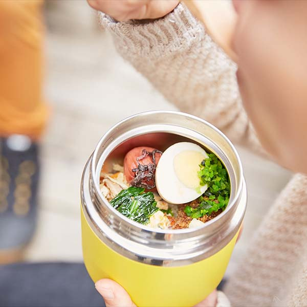 旬の食材を使った地産地消の料理を、フードジャーに詰めた“山弁当”。