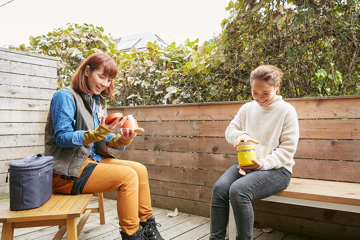 「アウトドア感のあるワクワクするようなデザインやカラーバリーションがとても良いし、保温性や耐久性といった機能もしっかりあるので、山弁当にはピッタリのアイテムだと思いました。何より、このサービスを利用する人たちから『なんかアレ、いいなあ』と憧れの気持ちをもってもらえることが、山の新しいカルチャーとして育てていく上でポイントになるからです」(岡崎さん)。