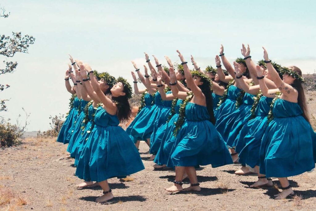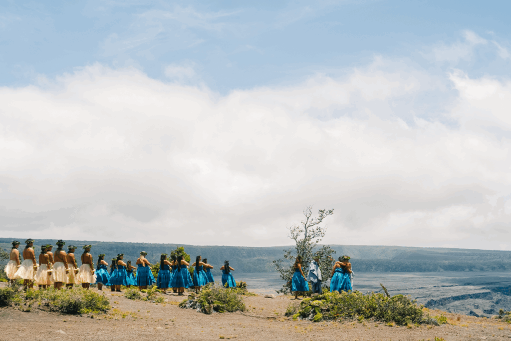 「メリーモナーク開催前にチーム全員でハワイ島の神様がいるとされているキラウエア火山で踊りを捧げる儀式があります。ハワイの神様でもあるペレに祈るという内容の儀式で、この日のために作った草木の装飾を身に纏い踊り、自分の一部をペレに捧げるため最後にそれらを火山口に投げ入れます。