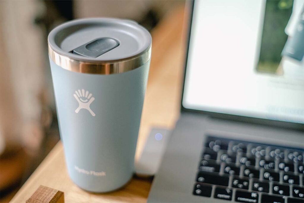 「たとえば、自宅で集中して作業したい時とか席から立つ回数を減らしたいですよね。冷えたりぬるくなったりするとその都度席を立たなくてはいけないので、そういうシチュエーションにもハイドロフラスクのカップは優秀です。集中して時間が経ってから飲もうとしても、熱っ、てなってしまうくらいなんです」。