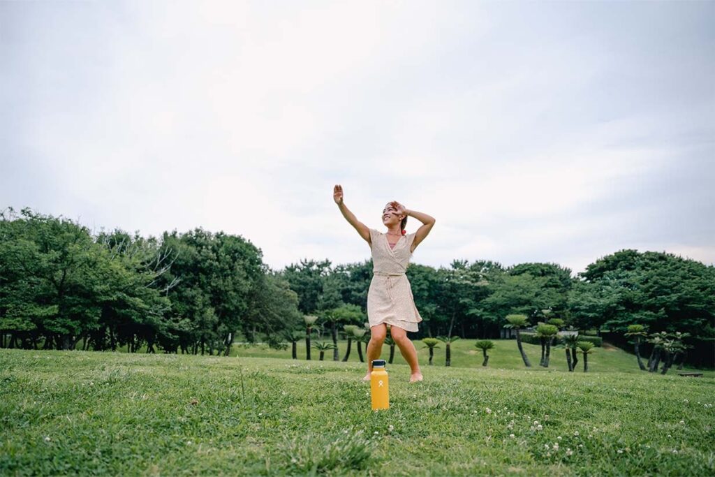 「ハワイで初めてフラの練習に参加した時に、先生が必ず『Flask, Hydro Flask持ってきてね』と私たち生徒に言うんです。もちろん水筒を持ってきてと言う事なんですが、水筒=Hydro Flaskになっているみたいで。だから私も自然とHydro Flaskを手に取っていましたね」。