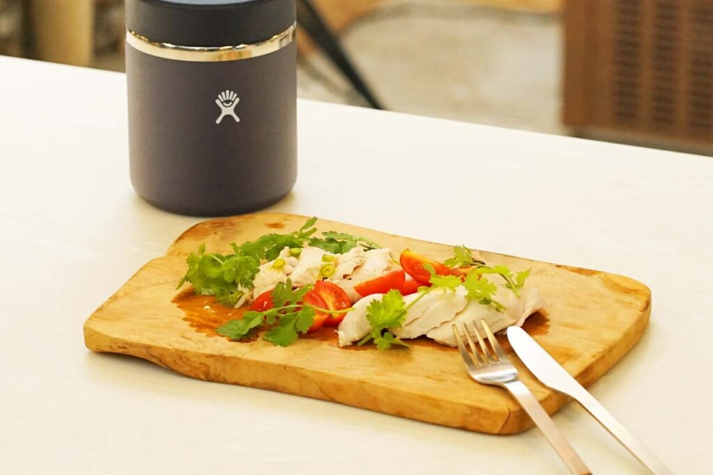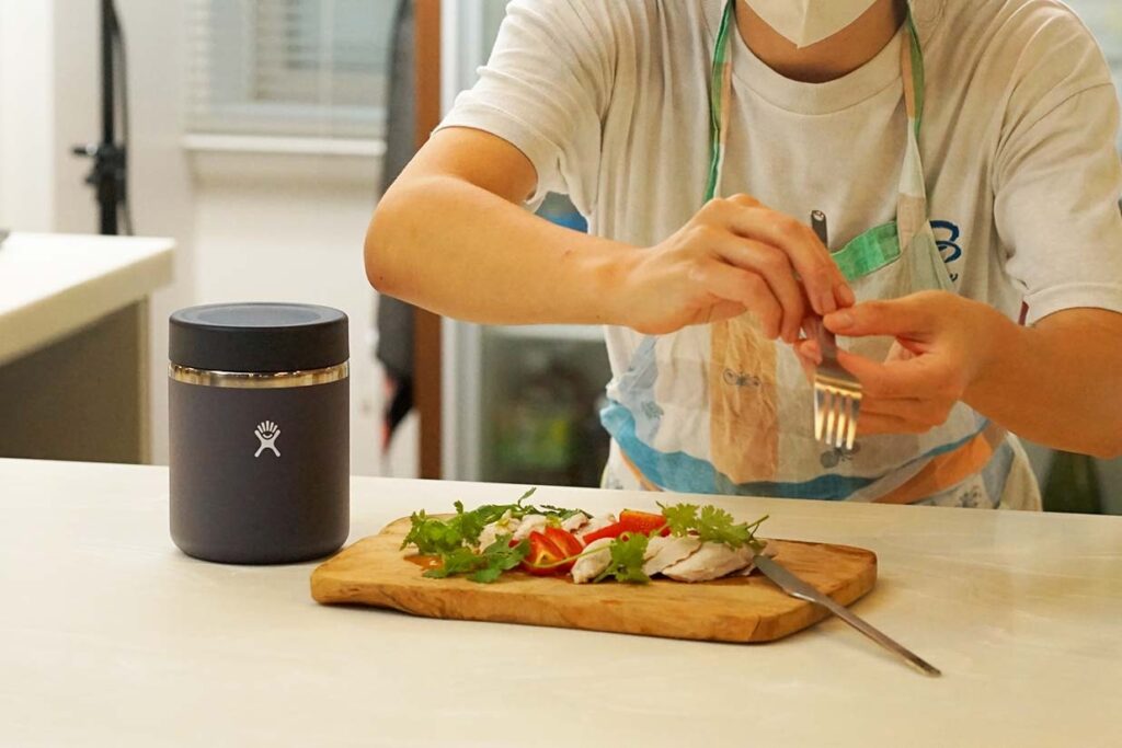 「女性は働いて帰ってきたらすぐに食事の準備をするなど、タイトなスケジュールで動くのが常。放っておいたらできあがる一品があるとうれしいですよね。Hydro Flaskの「28 oz Food Jar 」で簡単に作ることができるサラダチキンはまさにそんな一品。いや、一品と言いつつ、実は二品なんです。作る過程できるスープもすごく美味しいから、是非飲んでみてください」