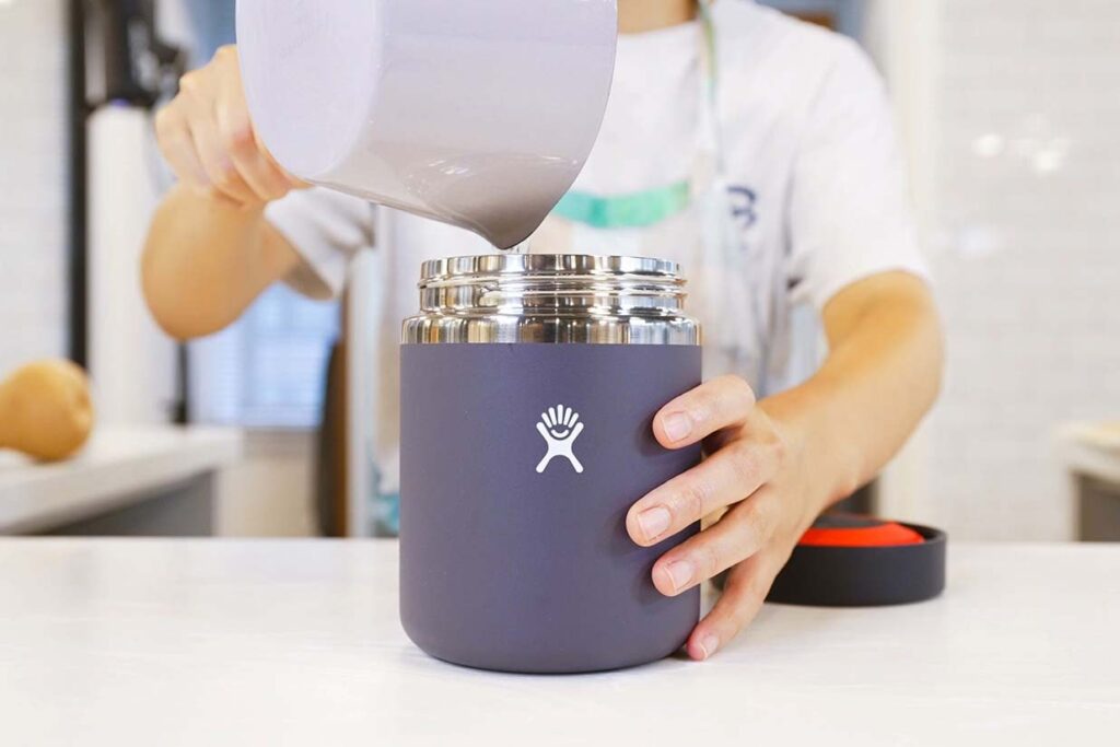 Hydro Flaskの保温力は最大の強み。蓋にはハニカム断熱構造を採用しているので、長時間アツアツの状態をキープできる。ずっとお鍋についていなくても、Food Jarの強みを活かして時短レシピを!調理に使用した「28oz Food Jar」は、828mlの大容量モデル。ランチボックスとしてはもちろん、クッキングツールとしてマルチに使用できる優れものだ。