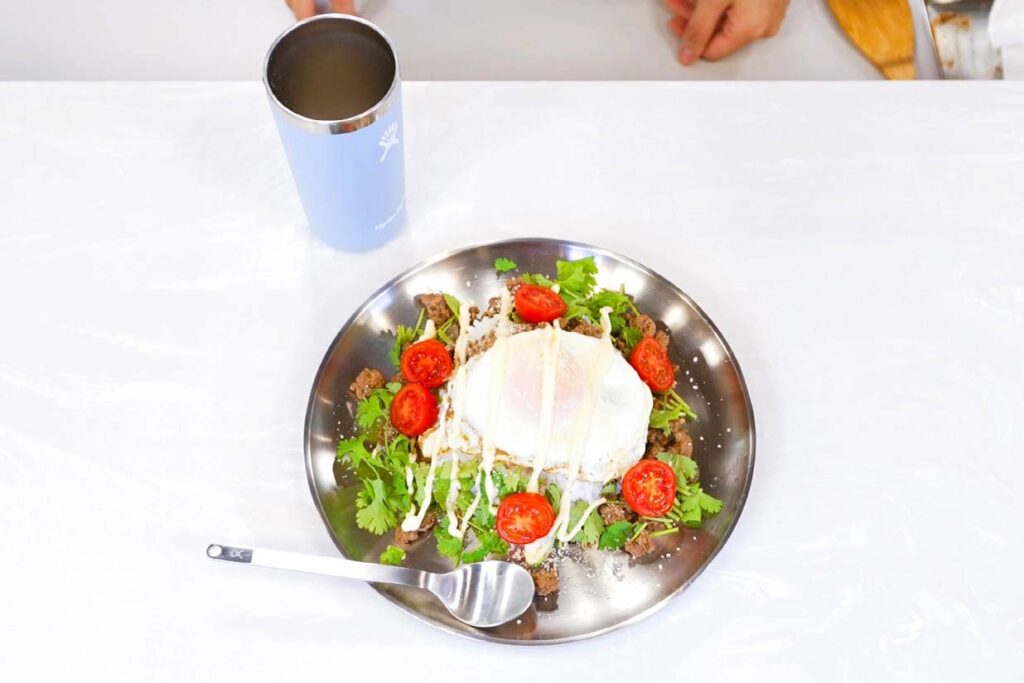 今回は大石さんに、Hydro Flaskの機能性を最大限に発揮できるオリジナルレシピを依頼。Food Jarで作る鶏ハム、オリジナルスパイスが効いたタコライス、生姜入りで体が芯からあたたまるオーツミルクのチャイ。どのメニューもふたを開けた瞬間の香りに心がときめき、素材やスパイスを生かした味つけは体も心も元気になりそうだ。