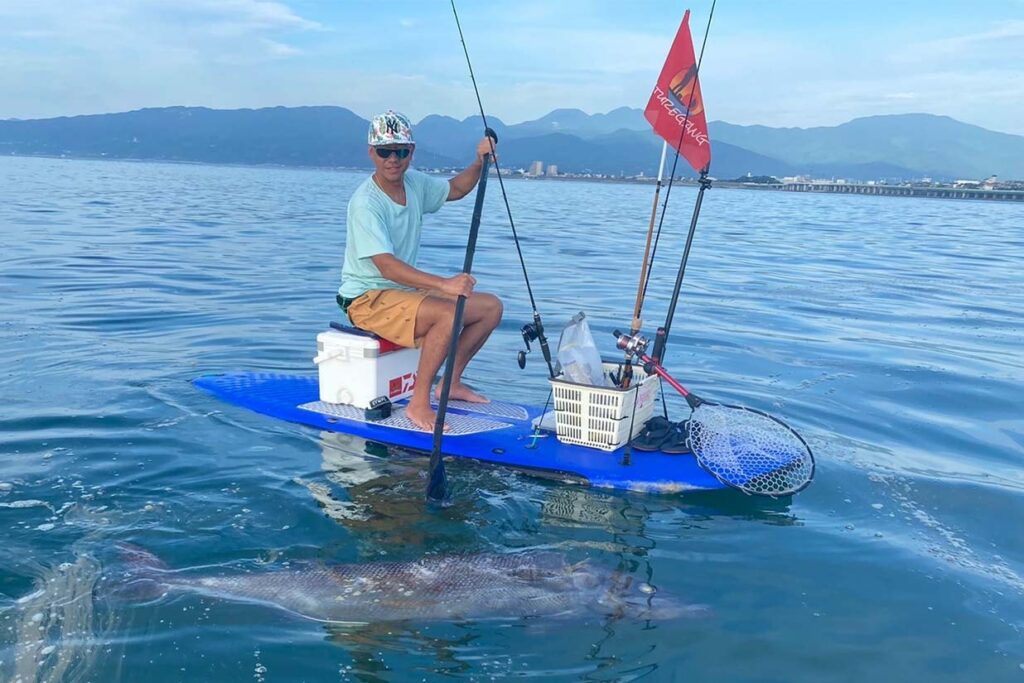 そうして藤沢や鎌倉のサーフエリアでサーフィンに興じ、「今日は釣りだ」という日にはSUPを持ち出す。かつては空気を入れることで膨らみ、空気を抜けば畳めて持ち運びしやすいインフレータブルというタイプのSUPだったが、釣った真鯛のヒレで穴が空いてしまい徐々に空気が抜けていくなかを岸に戻る恐怖体験を味わった。以来、折り畳めないが発泡スチロールのような素材でできた軽量なソフトボード型のSUPを愛用。なるべく一人では行かない、岸辺は無風でも沖合で風が吹いていたら行かない、そんなリスク管理をしっかり行なって、ビーチ沿いのライフスタイルを満喫している。