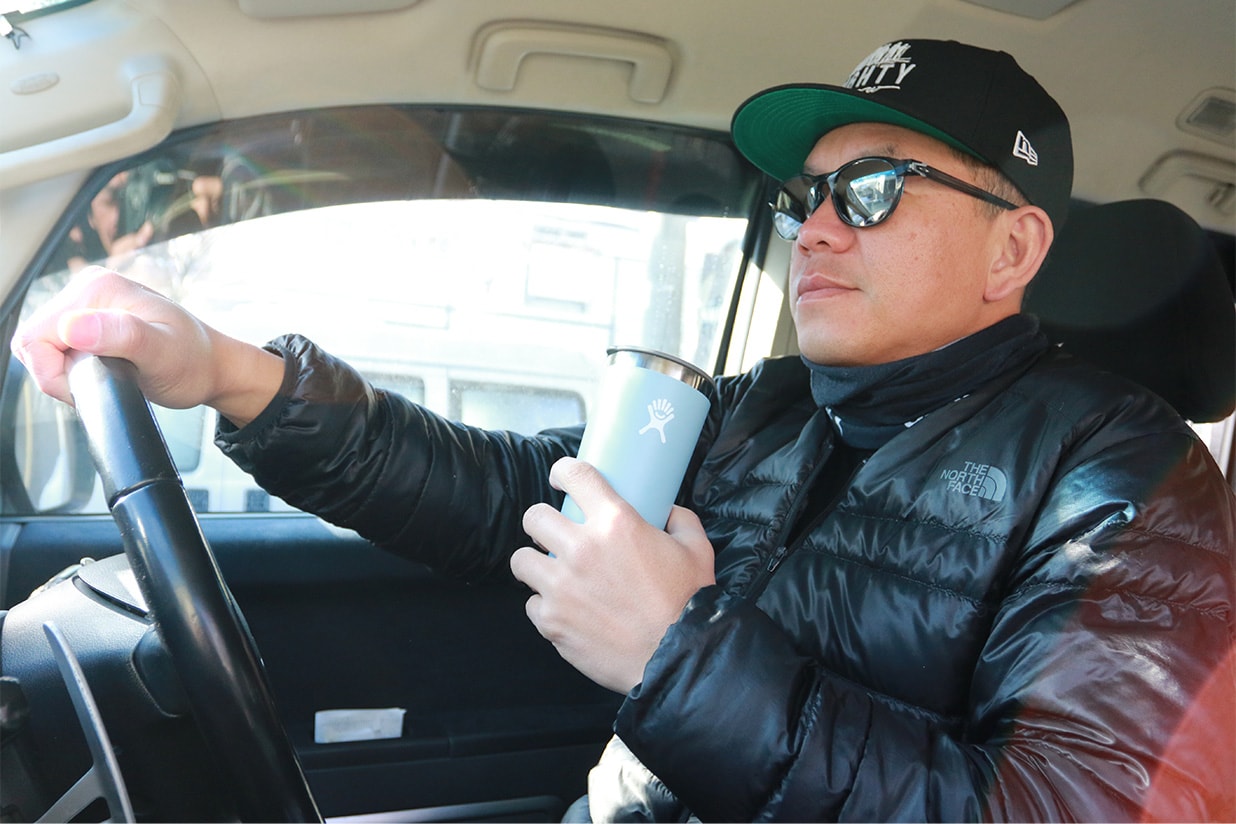 「アウトドアに行くときは必ず持っていきますね。保温保冷の性能に優れているので、冬は温かいもの、夏は冷たいものを入れて。SUPフィッシングでは、お菓子は忘れてもコレは絶対に忘れませんし、雪山でもバックパックの中に忍ばせています。家や移動中のクルマの中でも、フタ付きのタンブラーを使ってコーヒーを飲んだりしています」自然への感度が高くなって、マイボトルとタンブラーの重要性を感じるように。使い続けるうちに愛着も増していった。そうして「Hydro Flask」の製品は、今やSAMI-Tさんのエッセンシャルなアイテムとなっている。