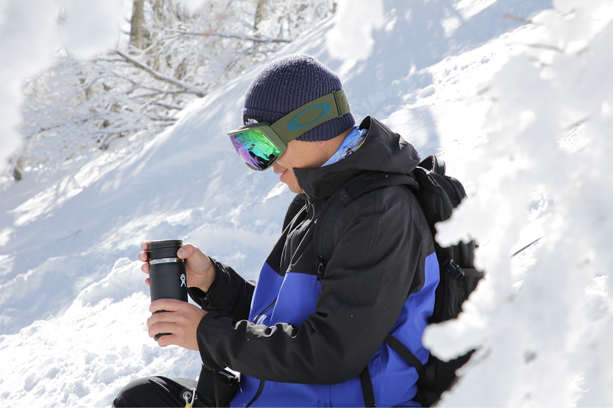 「アウトドアに行くときは必ず持っていきますね。保温保冷の性能に優れているので、冬は温かいもの、夏は冷たいものを入れて。SUPフィッシングでは、お菓子は忘れてもコレは絶対に忘れませんし、雪山でもバックパックの中に忍ばせています。家や移動中のクルマの中でも、フタ付きのタンブラーを使ってコーヒーを飲んだりしています」自然への感度が高くなって、マイボトルとタンブラーの重要性を感じるように。使い続けるうちに愛着も増していった。そうして「Hydro Flask」の製品は、今やSAMI-Tさんのエッセンシャルなアイテムとなっている。