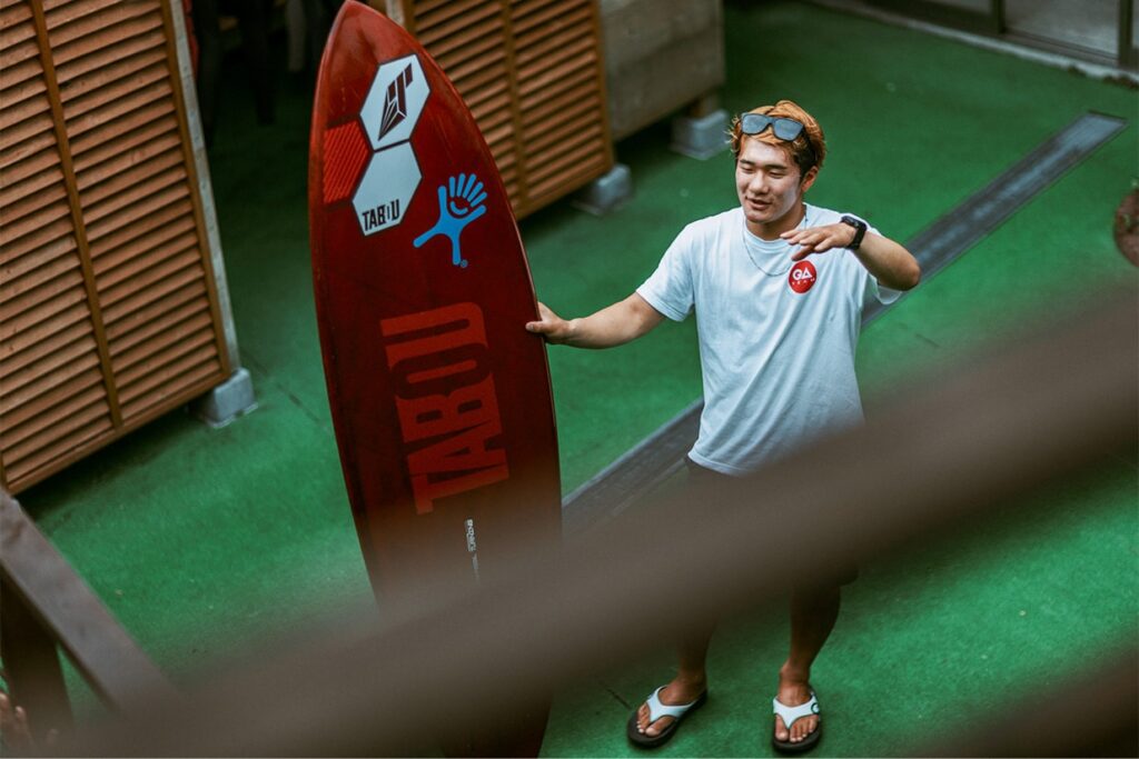 「物心ついたときから海に入っていますから、サステナビリティについては常に関心を持っています。昨年は“スポGOMI(ゴミ拾いを競う新しい概念のスポーツ)”とコラボレーションして、ビーチクリーンを実施しました」
