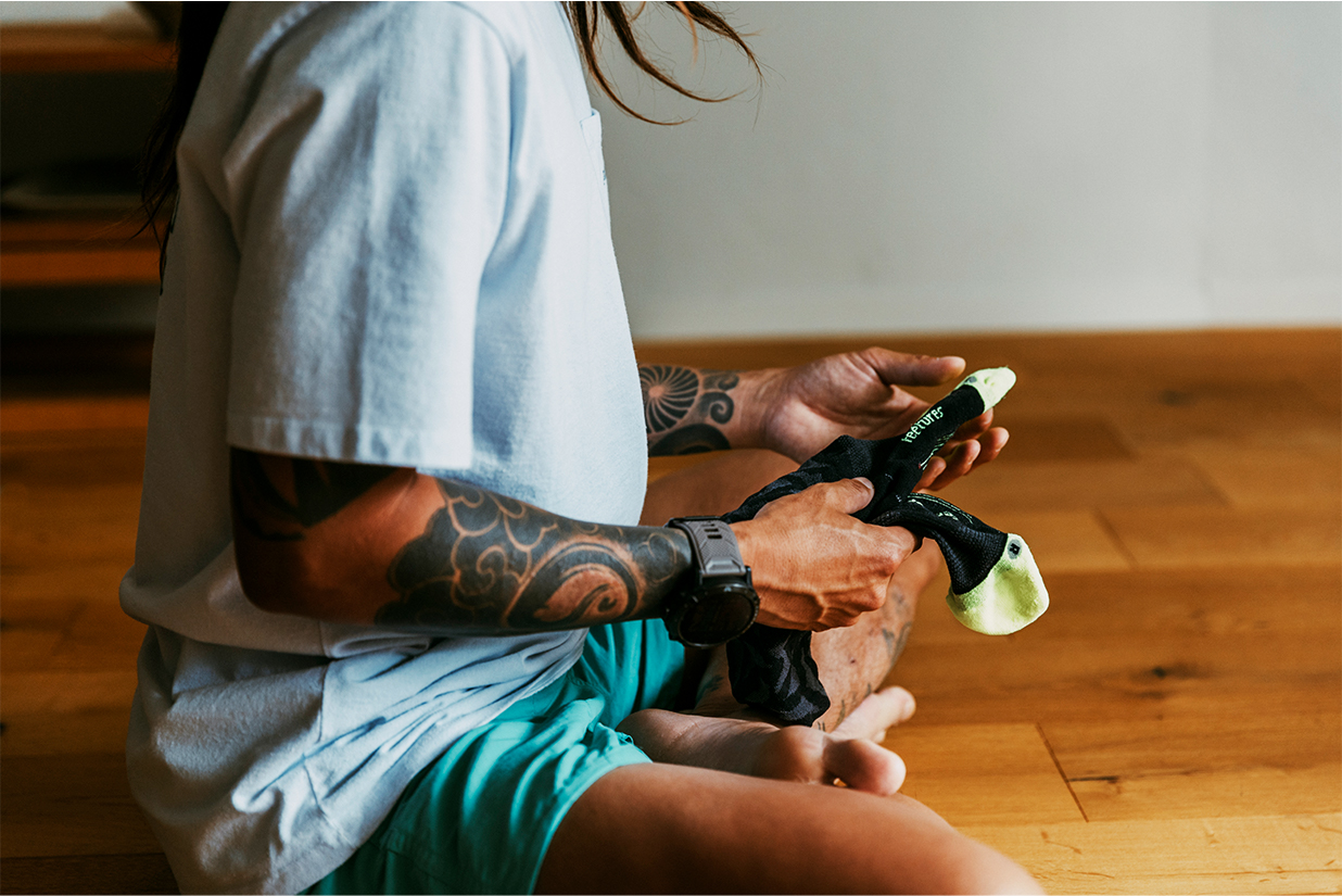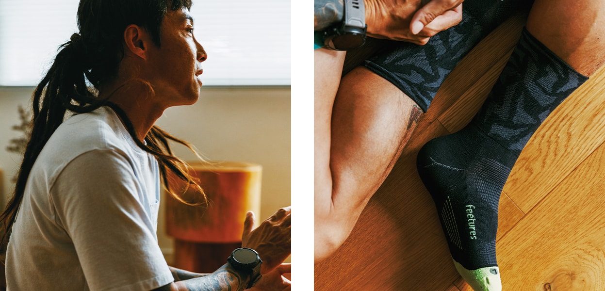 トレイルランナーの最重要アイテムといえばやはりシューズ。アルコインターナショナルでは、米国生まれの「Topo Athletic®(トポアスレチック)」のシューズで南 圭介さんをスポンサードしています。そのほか「Feetures®(フィーチャーズ)」「Body Glide®(ボディーグライド)」「OOFOS®(ウーフォス)」の製品をサポート。それぞれの使い心地やデザインについて、南さんにたずねてみました。