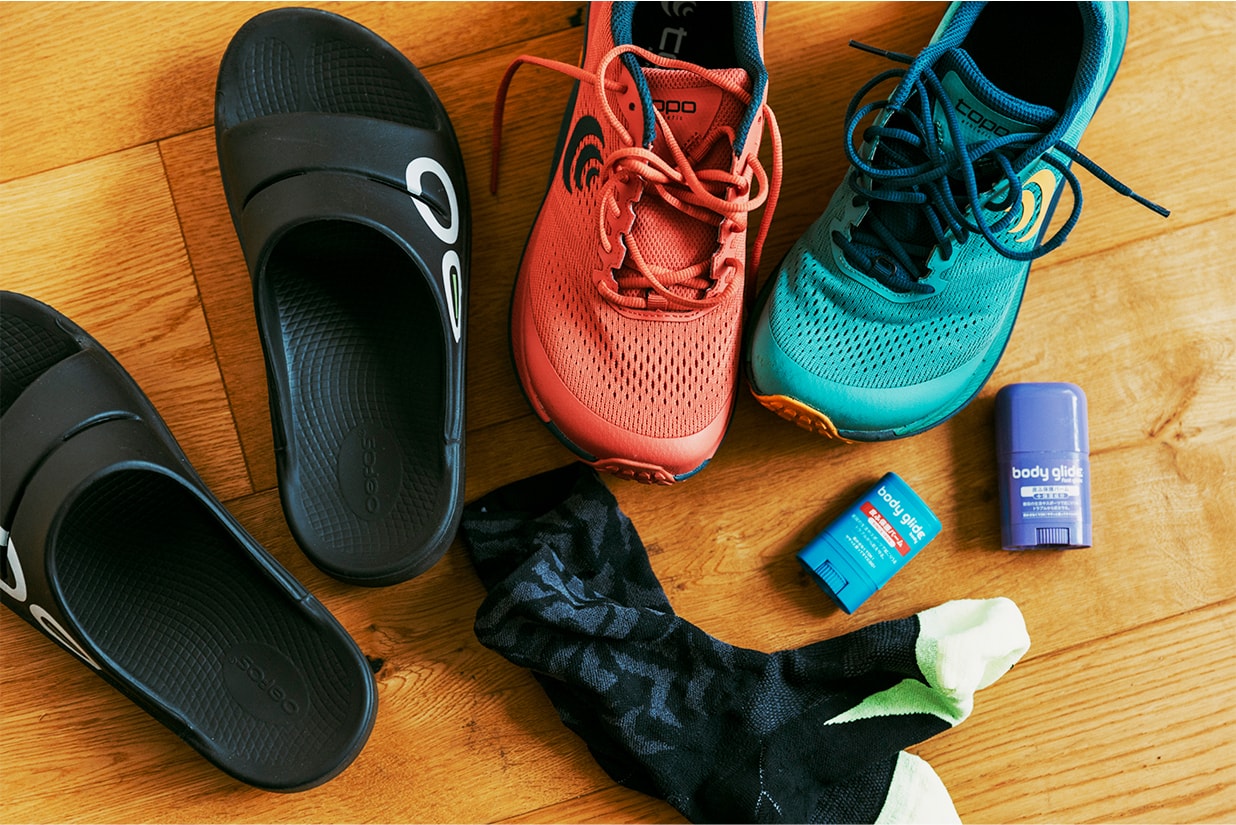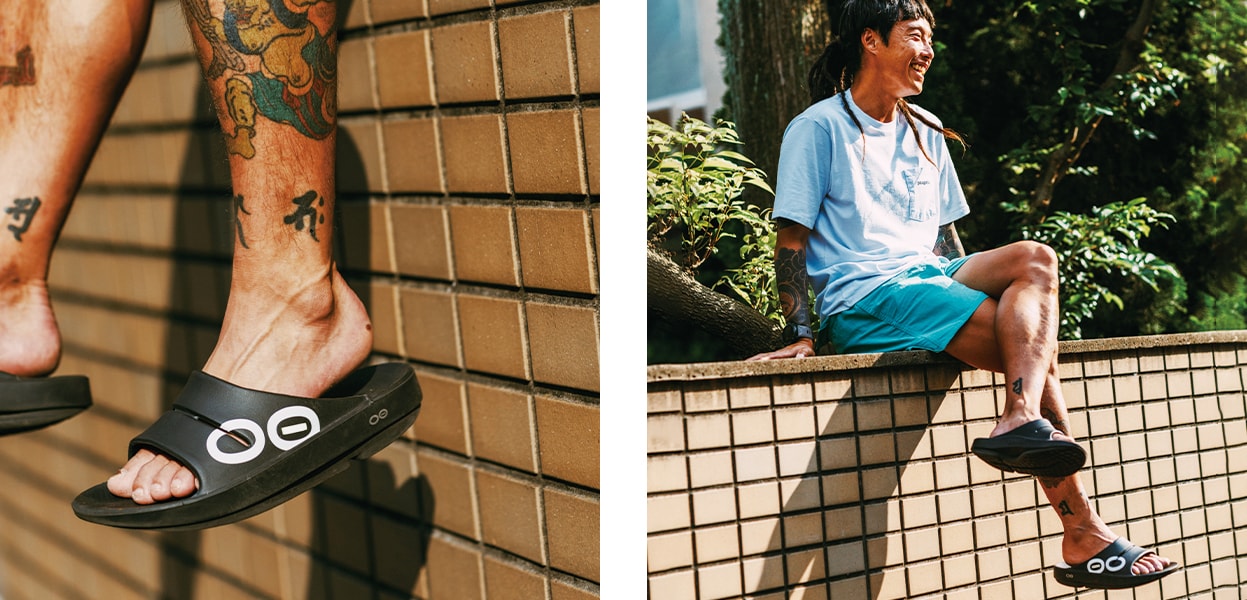 そしてレースのあとはもちろん、普段履きとしても活躍してくれるのが、リカバリーサンダルのパイオニアとして知られるOOFOS。