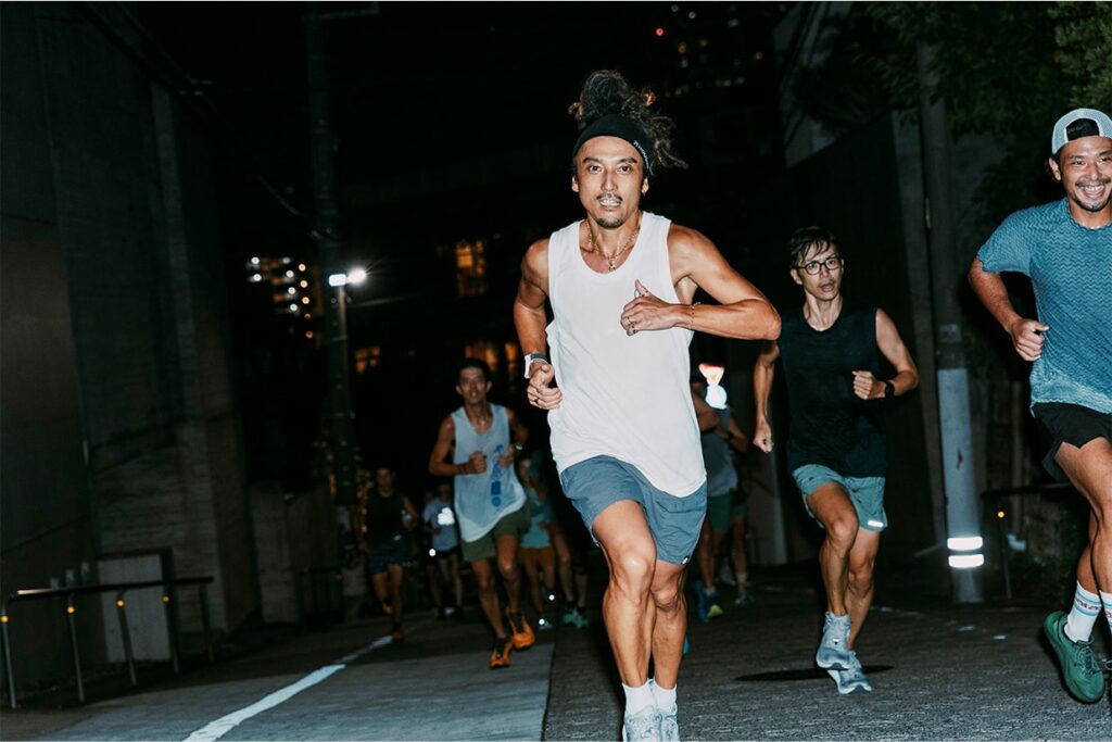 このメンバーの顔つきが、チキンハートというチームの魅力を代弁していると感じました。等しくこのつながりを楽しみ、等しく苦しい練習に挑む。午後8時、メンバーは「Broccoli Playhair」を後にして夜の街へ。いよいよグループランのスタートです。