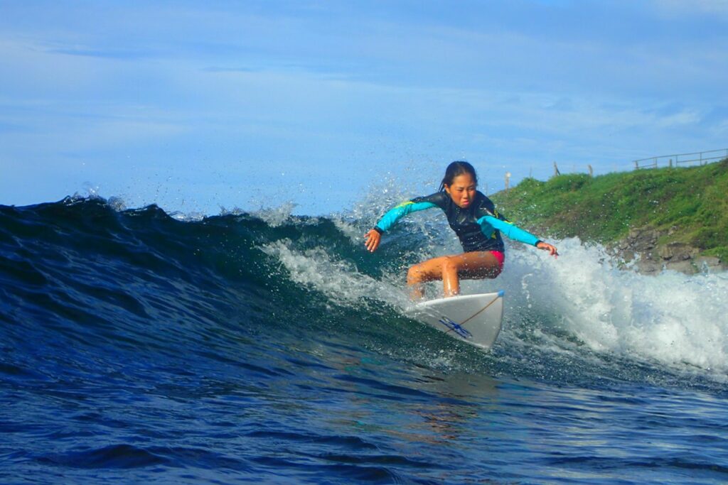 サーフィンに本腰を入れたのは虹帆さんが小学校高学年になる頃。「ボディーボードで“サーフィンごっこ”みたいなことはしていたんですが、次第に、二つとない“その時の波”に乗る快感にとりつかれました。自然の力を受け止める楽しさ、難しさにハマり、サーフィンにのめり込んだんです」