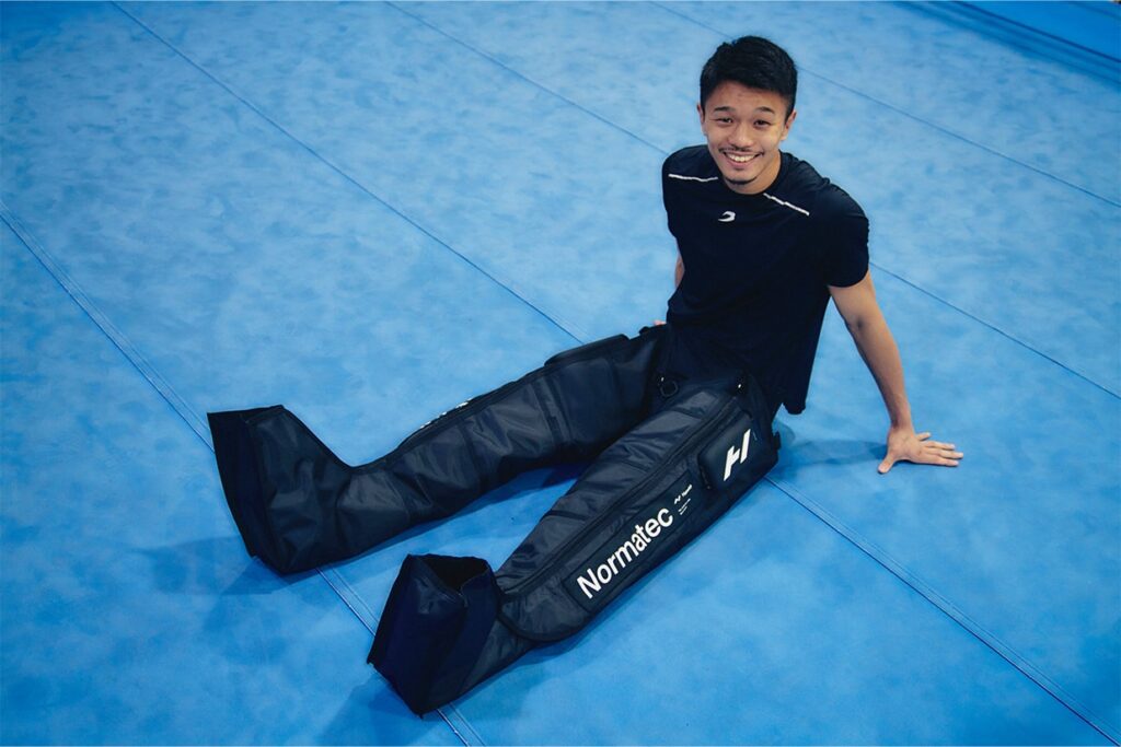 「リカバリーの良し悪しは、パフォーマンスにも直結します。毎日の練習後はもちろん、試合のあとも、エアーコンプレッションのおかげで非常に楽になります。空気の圧縮感がクセになりますね(笑)」