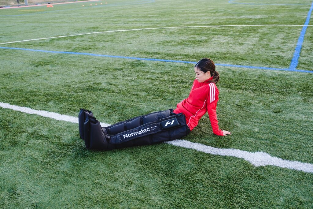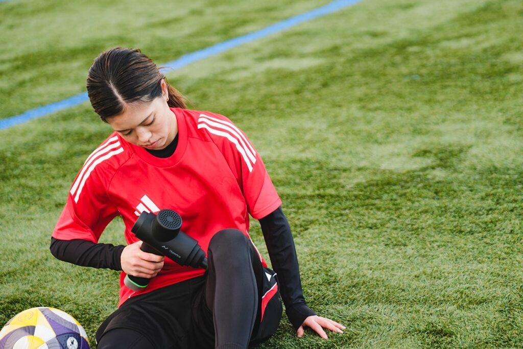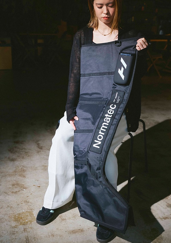 「かなり以前から存在は知っていて、チームが所有するHypericeのギアを使っていました。特にお気に入りなのが、Hypersphere Goという振動する小さなボール。鈍感だからこそ気付きにくい筋肉の奥の方を刺激してくれるから、確実にケガの予防になっていると思います。Normatecシリーズは、試合後の必需品。このリカバリーブーツはジムに置いてあるチームも多くて、海外ではより頻繁に見かけますね」