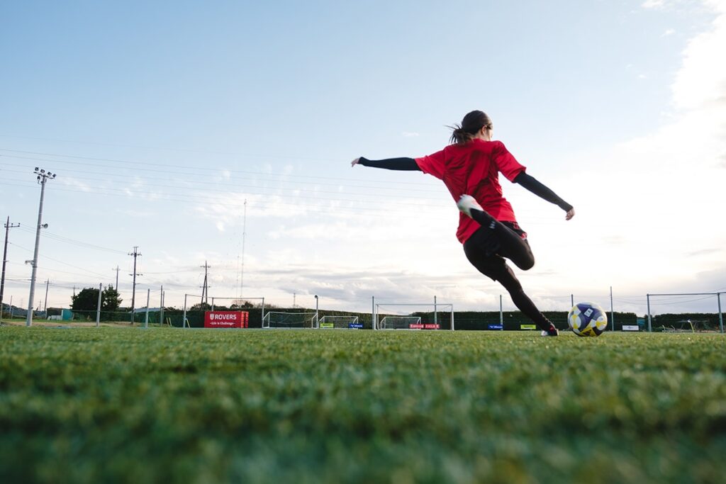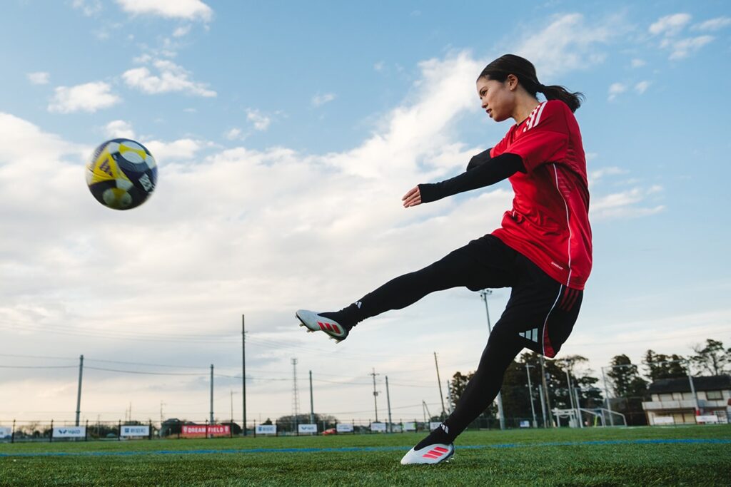 持ち前の向上心と好奇心を、遊びのシーンでもちらりと覗かせて。幼くしてサッカーに巡り合った少女は、心身ともに成長した今も、全力で運命のスポーツに打ち込んでいるのです。