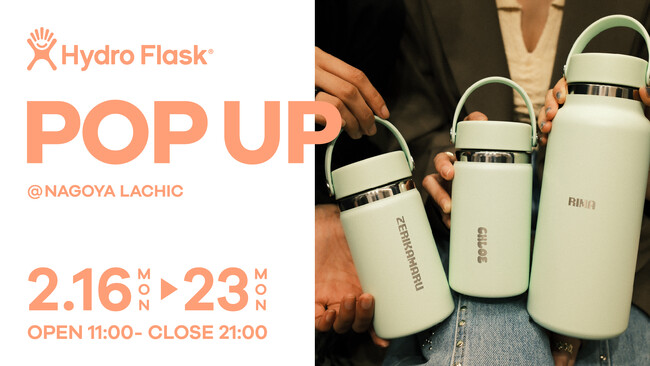 大好評の刻印サービスが名古屋初上陸!(米)断熱ステンレスボトル「Hydro Flask(R)(ハイドロフラスク)」がラシックにて1週間限定のPOPUPを開催。